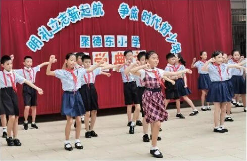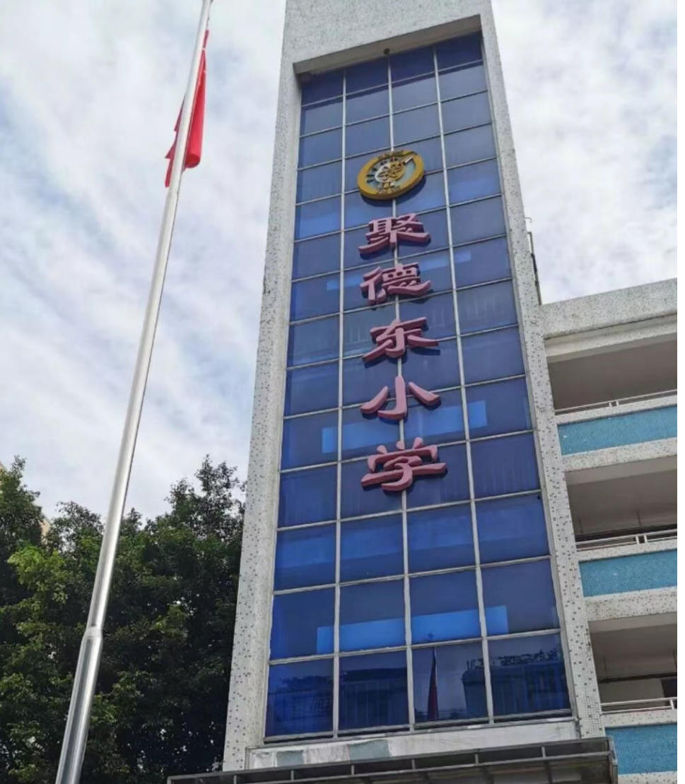 海珠区聚德东小学前身为始建于20世纪50年代的新村小学,2000年9月更为现名,现位于广州市海珠区赤岗大塘聚德东路30-32号。校园占地面积5456平方米,建筑面积364.5平方米,设18个教学班,在校生792人,配备计算机室、实验室、舞蹈室等教学设施及150米环形跑道等运动场地,绿化率达95%。现有教职工47人,其中专任教师38人、高级教师29人。该校2002年获评区一级学校,2006年5月晋升广州市一级学校,同年10月参与教育部‘中华经典诗文诵读实验’课题研究。