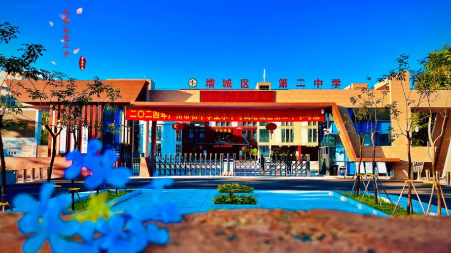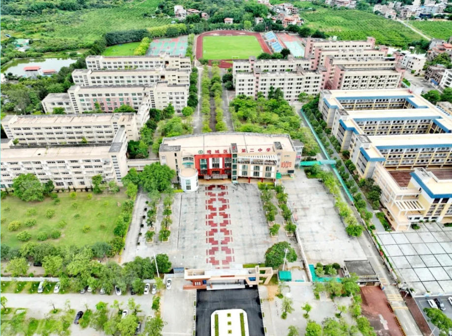 广州市增城区第二中学创办于2007年9月,学校位于增江街风景优美的焦石岭公园脚下,增江街东方村路口段,占地面积近200亩,建筑面积为63081平方米,校园内设有教学区、运动区和生活区,校园环境优美教育教学设备设施完善,教育教学条件优越。