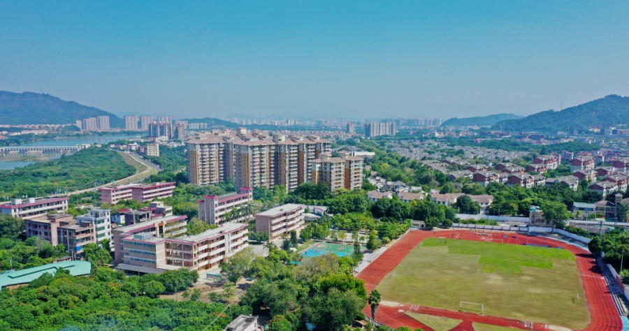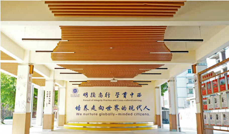 广东外语外贸大学从化实验中学位于广州市从化区太平镇,南临105国道,北靠流溪河,东邻逸泉山庄及高速公路出入口,距广从14号线地铁站口500米,距市区5公里,交通便利,地理位置优越。校园占地面积78亩,建筑面积14300平方米,可容纳1600名学生(40个教学班)。现有教师82人,学生716人。是自2021年8月起,从化区政府、从化区教育局与广东外语外贸大学合作举办的一所公办初中。因此,学校由原来的“广州市从化区神岗第二中学”更名为“广东外语外贸大学从化实验中学”。