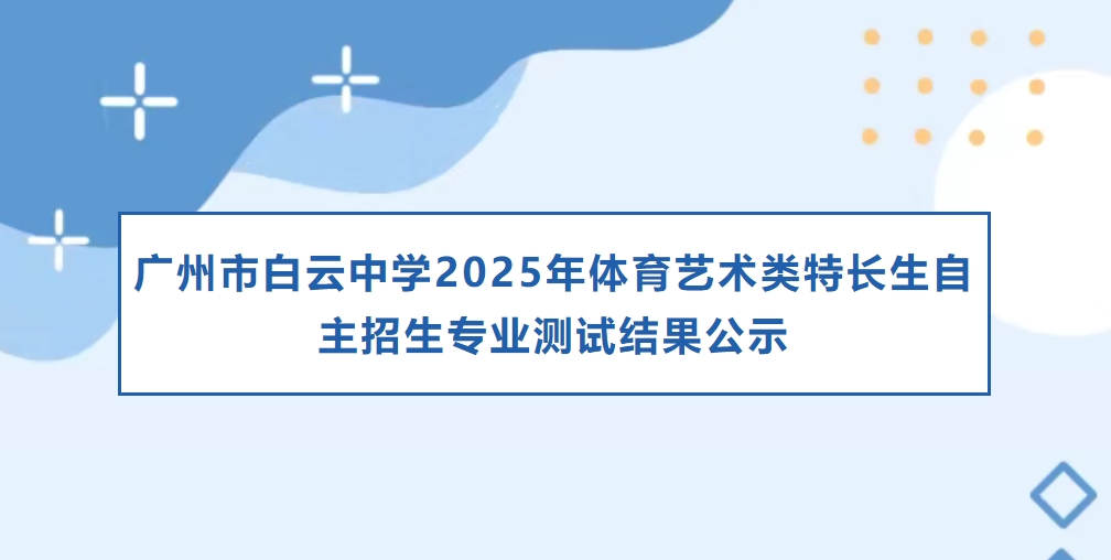 广州市白云中学2025年体育艺术类特长生自主招生专业测试结果公示