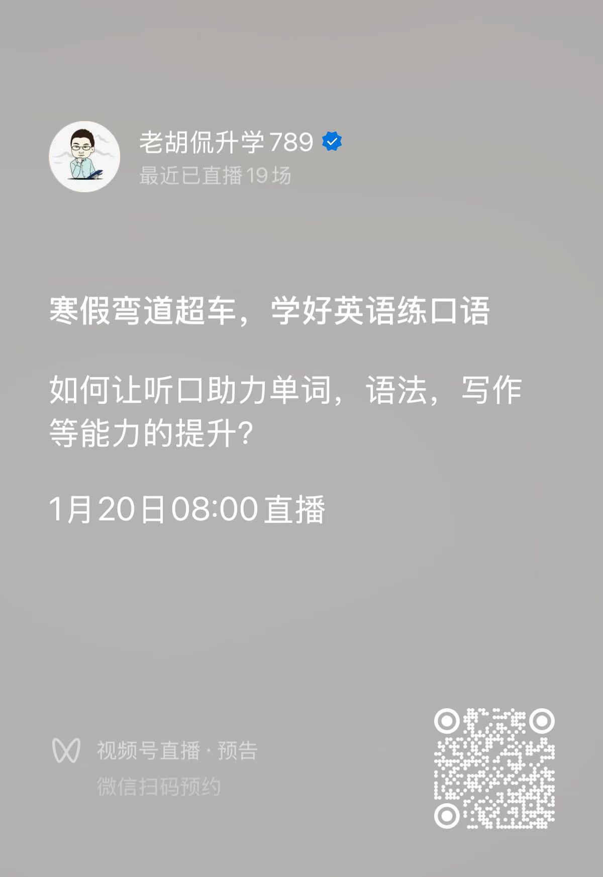 老胡侃升学1月20日寒假弯道超车,学好英语练口语
